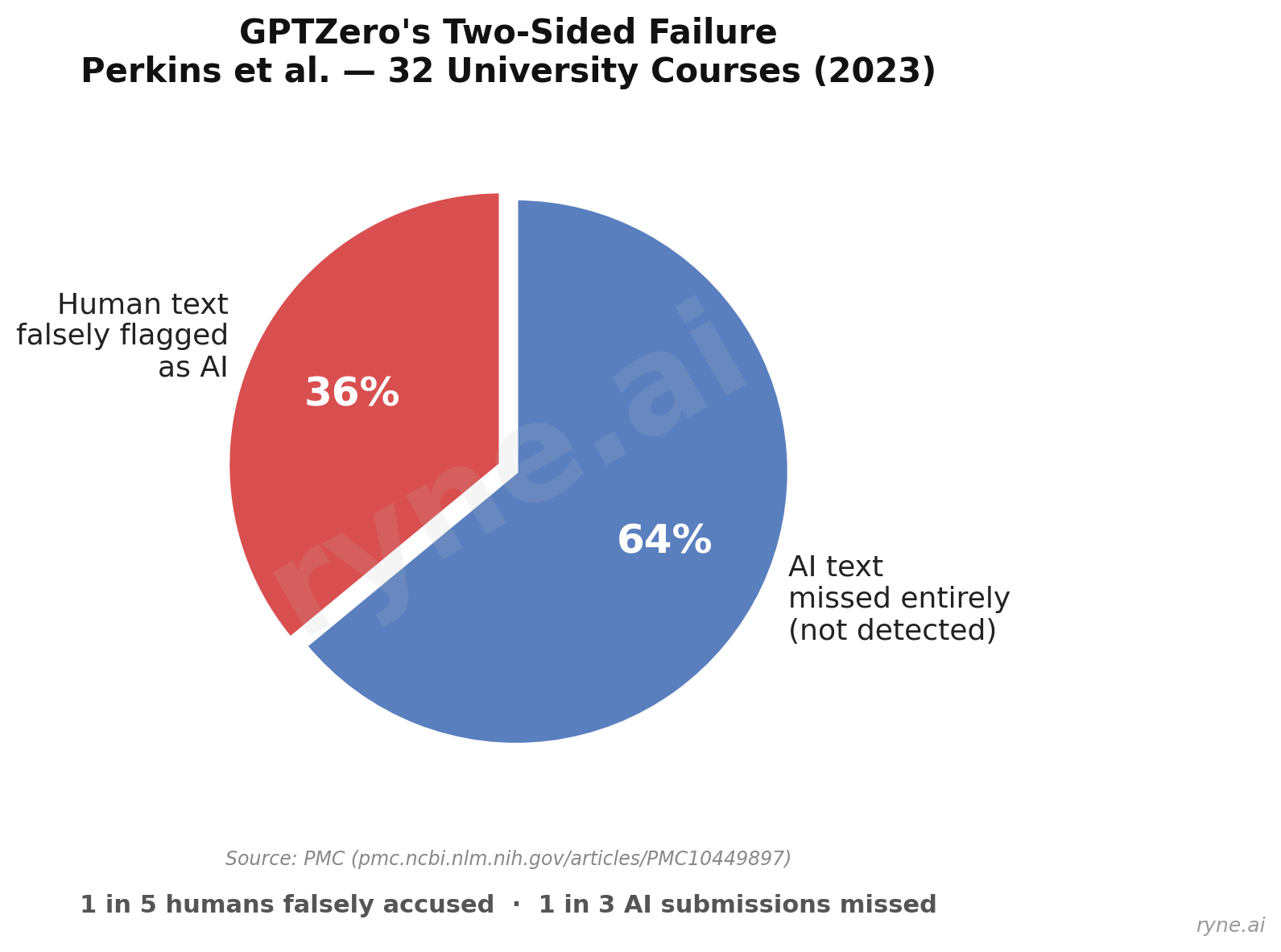 But it gets worse. The same study found a 32% false negative rate — meaning GPTZero missed nearly a third of the submissions that actually were AI-generated.