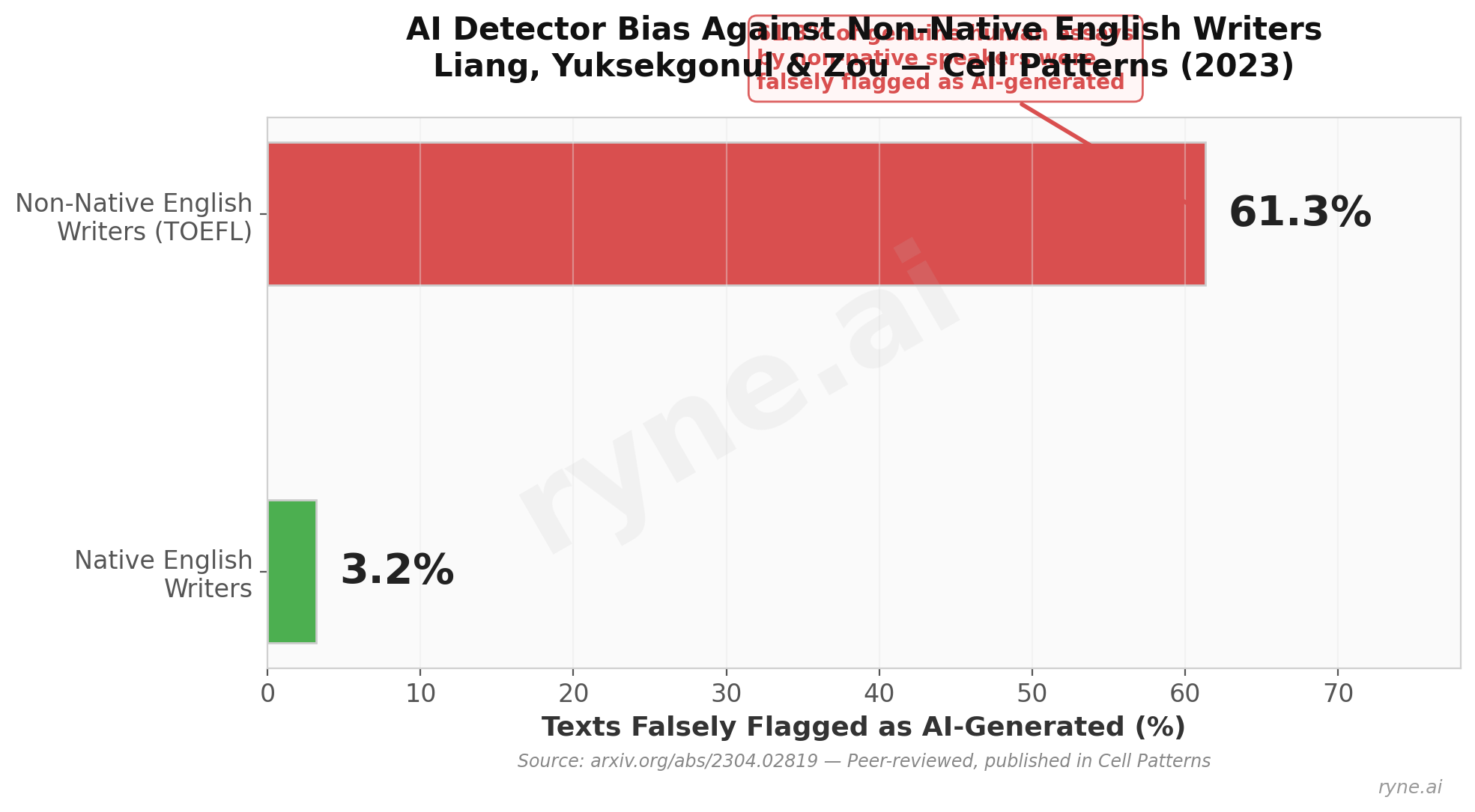 The TOEFL essays from non-native speakers? 61.3% falsely flagged as AI-generated.