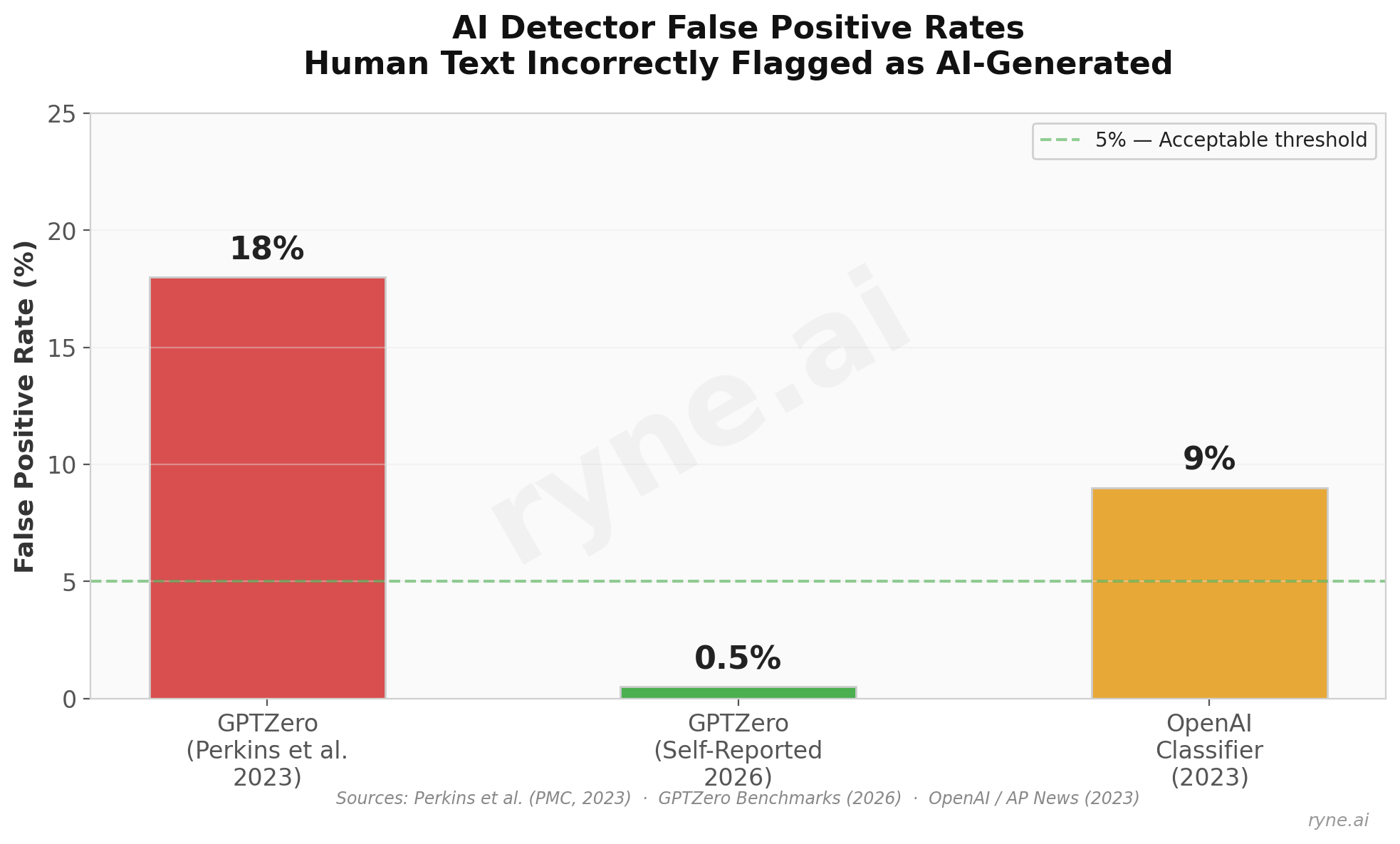 ## GPTZero claims a 0.5% false positive rate. Independent researchers found 18%.