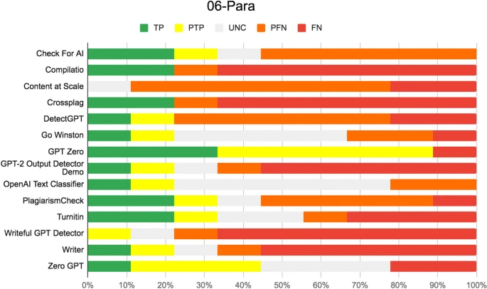 Meanwhile, the Weber-Wulff et al. (2023) — which tested 14 AI detection tools against various types of AI-generated and human-written text — found that Turnitin was the most accurate of all tools tested, with zero false positives across 54 test cases.
