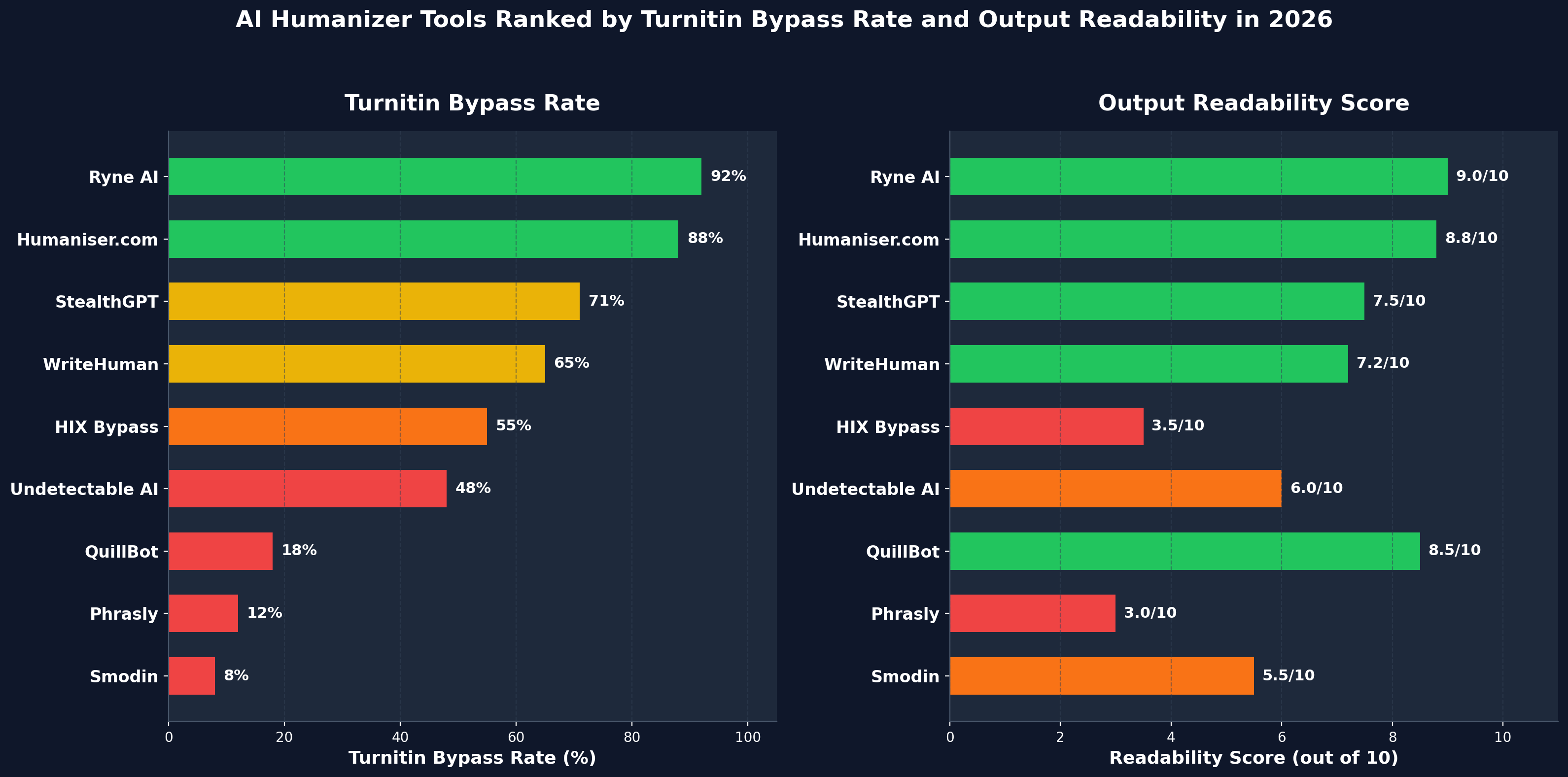 After testing multiple tools against Turnitin's current detection system, two stood clearly above the rest. Not by a small margin — by a massive one.