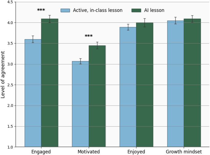 Research from Harvard and MIT comparing AI tutors to in-class active learning found that students learn significantly more in less time when using AI tutors. The study controlled for pedagogical quality—the AI tutor used the same teaching methods as the in-class lessons. The only difference was the medium. Yet the AI version outperformed traditional teaching.